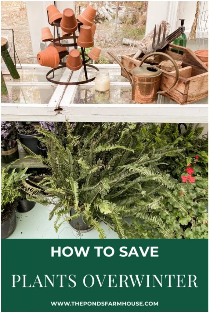 For some great tips to save plants over the winter, visit my friend Rachel of The Ponds Farmhouse where she uses her gorgeous greenhouse to overwinter her plants.