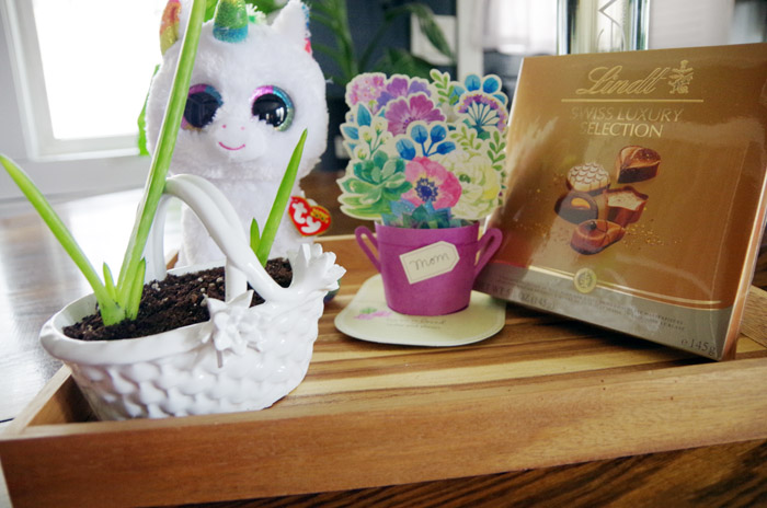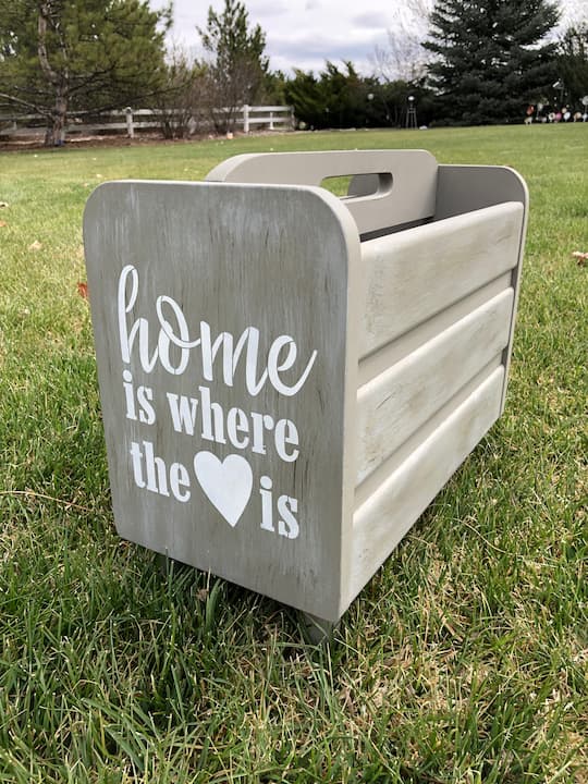 Many years ago, I found a vintage wooden tool carrier with handles and an iron holder at a thrift store. I love the stand that holds the toolbox.