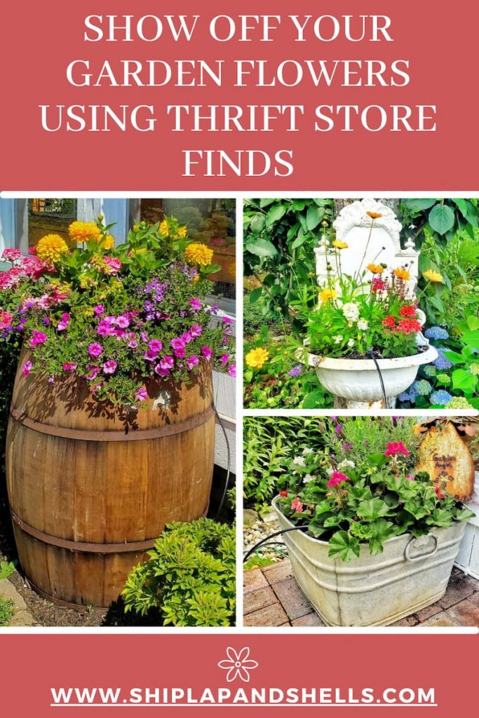 Are you looking for fun yard art and creative outdoor container ideas for your beautiful blooms? I’ll share how to show off your flowers using vintage thrift store finds as containers and fun props in the garden.