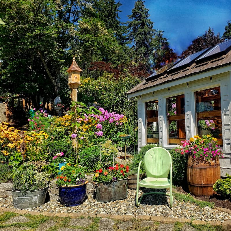 I hope you’ve taken away an idea or two about using your vintage thrift store finds for flower containers and yard art in the garden.