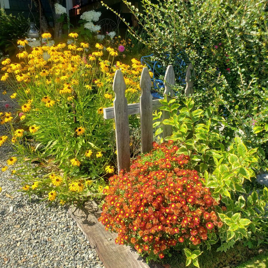 preparing your garden for fall: late summer cottage garden with bright flowers