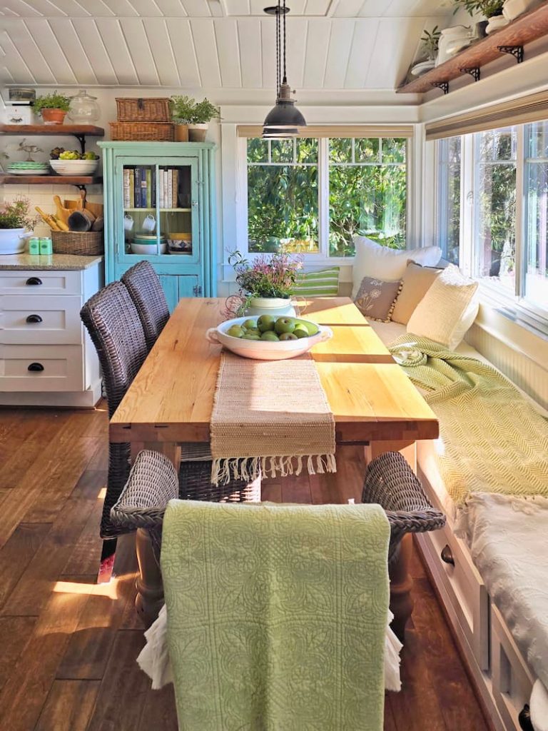 We wrapped the seat around the table in a “U” shape, which created the coziest little corner for morning coffee, casual dinners, or catching up with friends.