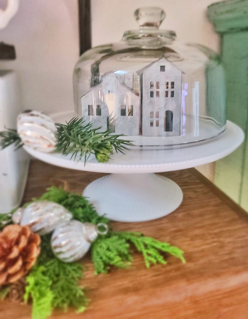 Glass cloches are so versatile. Fill them with tiny ornaments, faux snow, or mini Christmas villages for instant charm.