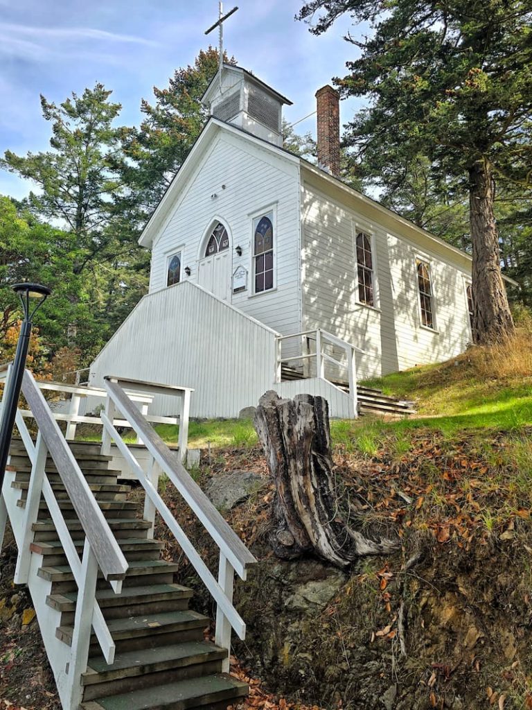 The stained-glass windows and old-world charm make this historic building shine, and the church bell still rings out at sunset during Roche Harbor’s daily flag ceremony.