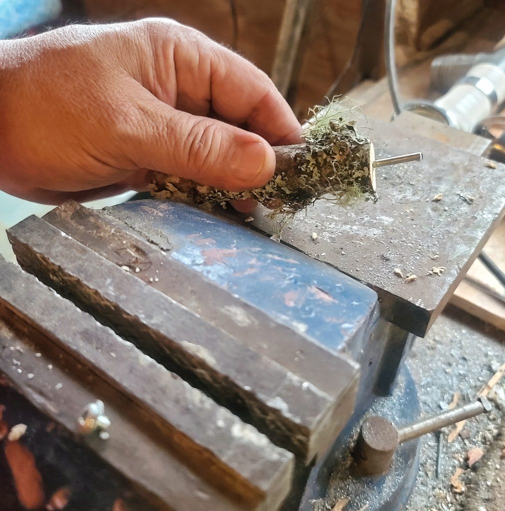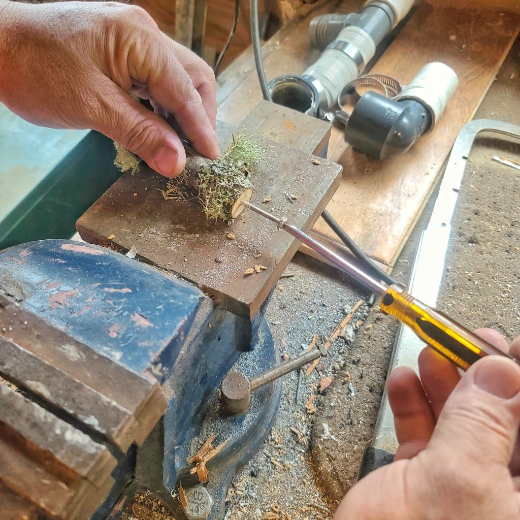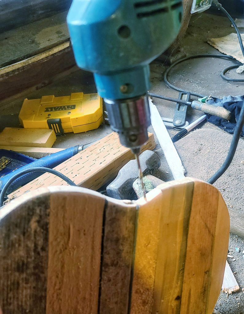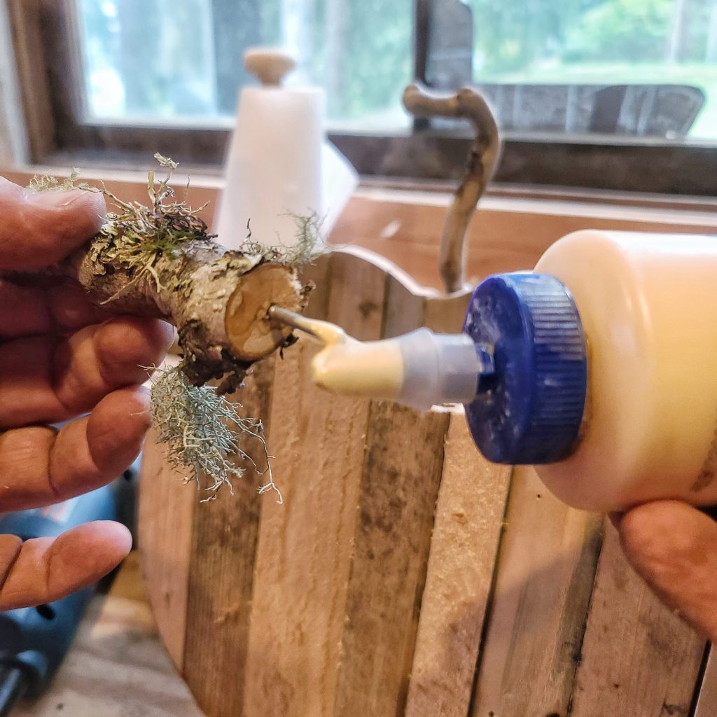 As you can see, I picked the one piece of wood with a hole on the top and strategically placed it in the worst place possible on the pumpkin. That’s why my stem is a little off-center.