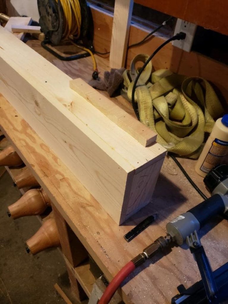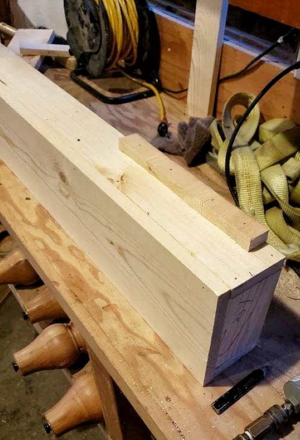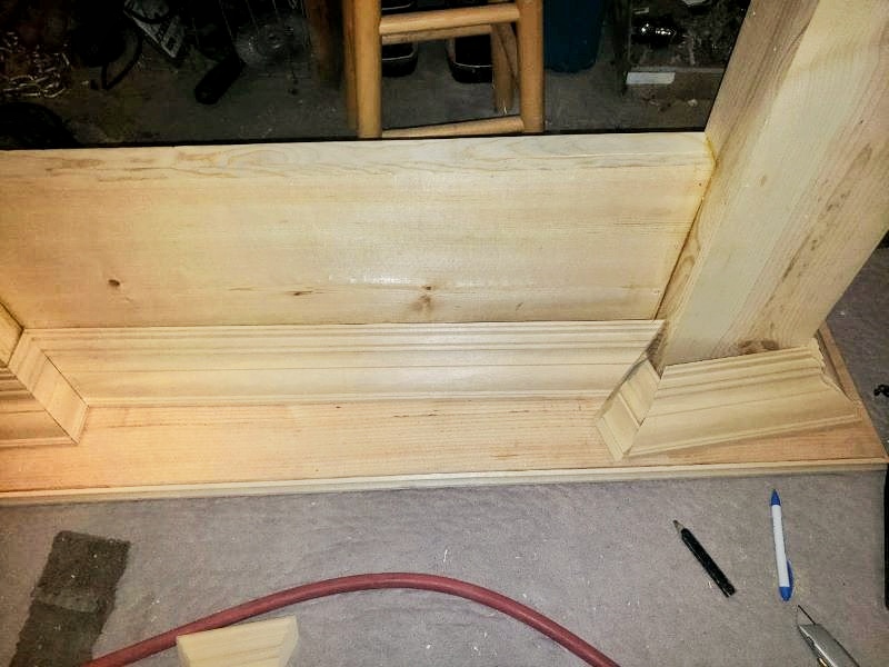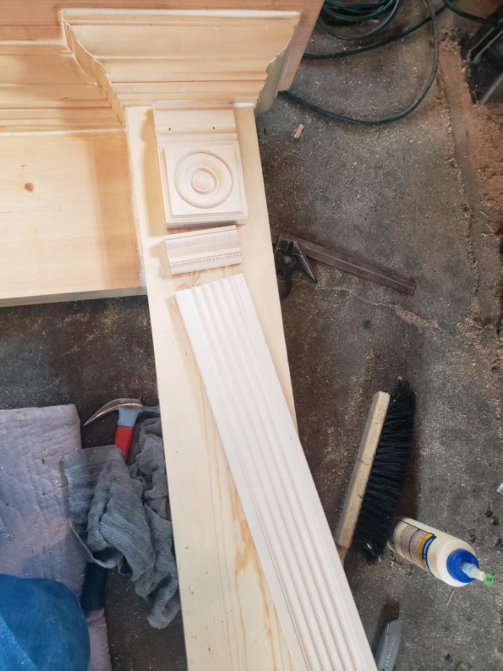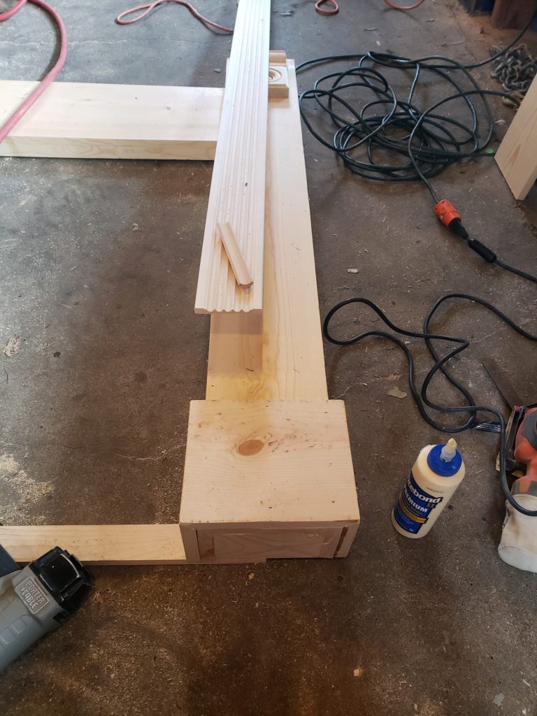Wrap the column bases with leftover 1″x 8″ pine pieces.