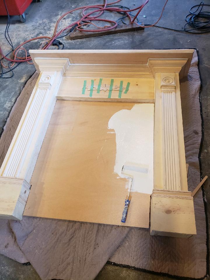 I didn’t add a painting step to this post because you can use so many painting techniques. We used white paint and a layered chippy paint method on our fireplace mantel surround.