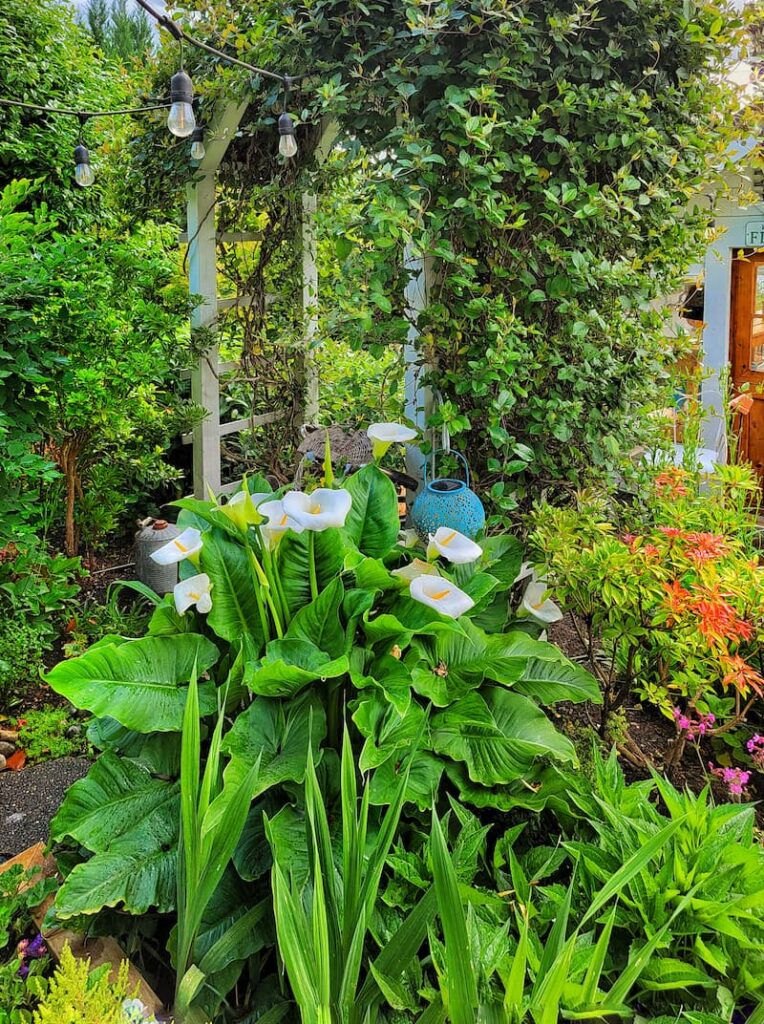 Calla lilies bring such a graceful touch to the garden with their curved blooms and rich green leaves.