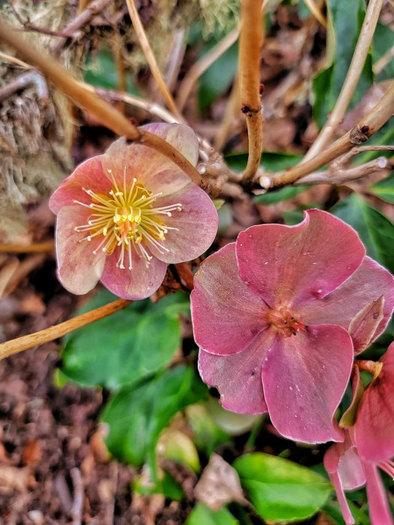 I can’t believe that my winter-blooming hellebores, or lenten roses, are still going strong.