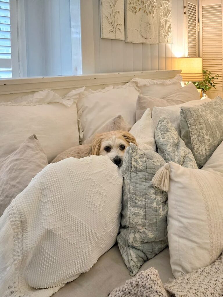 Oh sweet ollie. Nothing better than a photo of an adorable love bug doggie in the pillows. We lost our last little yorkie girl last year. I was literally sick for months after that.