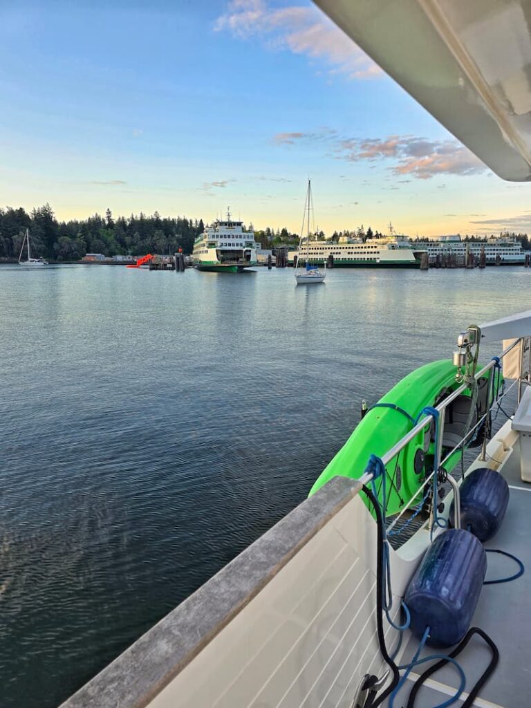 We anchored where we could see the ferries in the distance. It’s such a peaceful view and one I never get tired of.