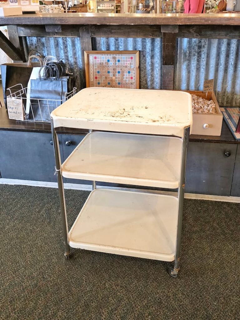 We spotted so many great pieces, but my favorite find was a vintage cart that I’m now using as a bar cart. I’m surprised I even saw the cart with all the other treasures loaded on it.
