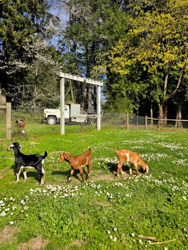 Do you remember the baby goats? The girls have grown so much, and they are seriously the most entertaining little things. Each one has such a different personality, and they’re so much fun to watch.