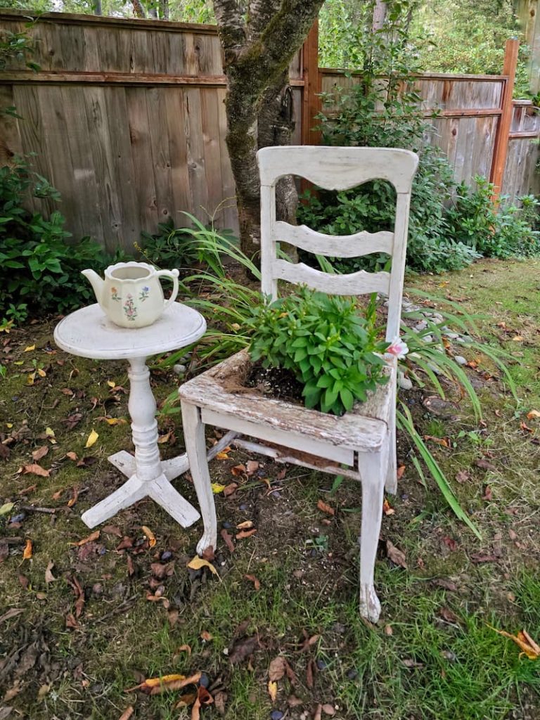 Don’t be afraid to think outside the box. A planter can be created out of a vintage chair.